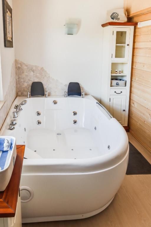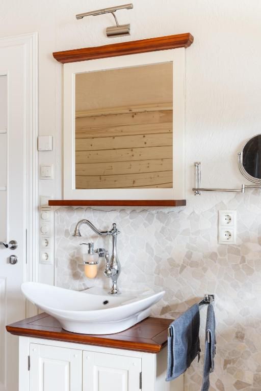 Im Tageslichtbad mit Fenster stehen Ihnen eine bodengleiche Dusche, eine Badewanne sowie ein Haartrockner zur Verfügung. Für kleinere Gäste gibt es einen Kinderhochstuhl.