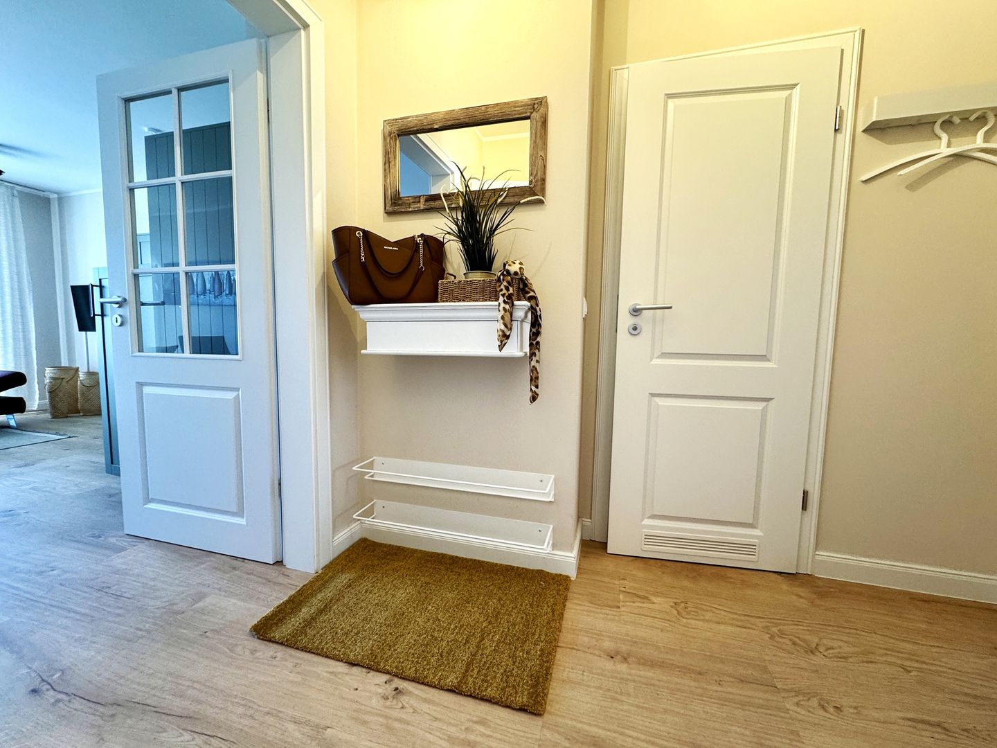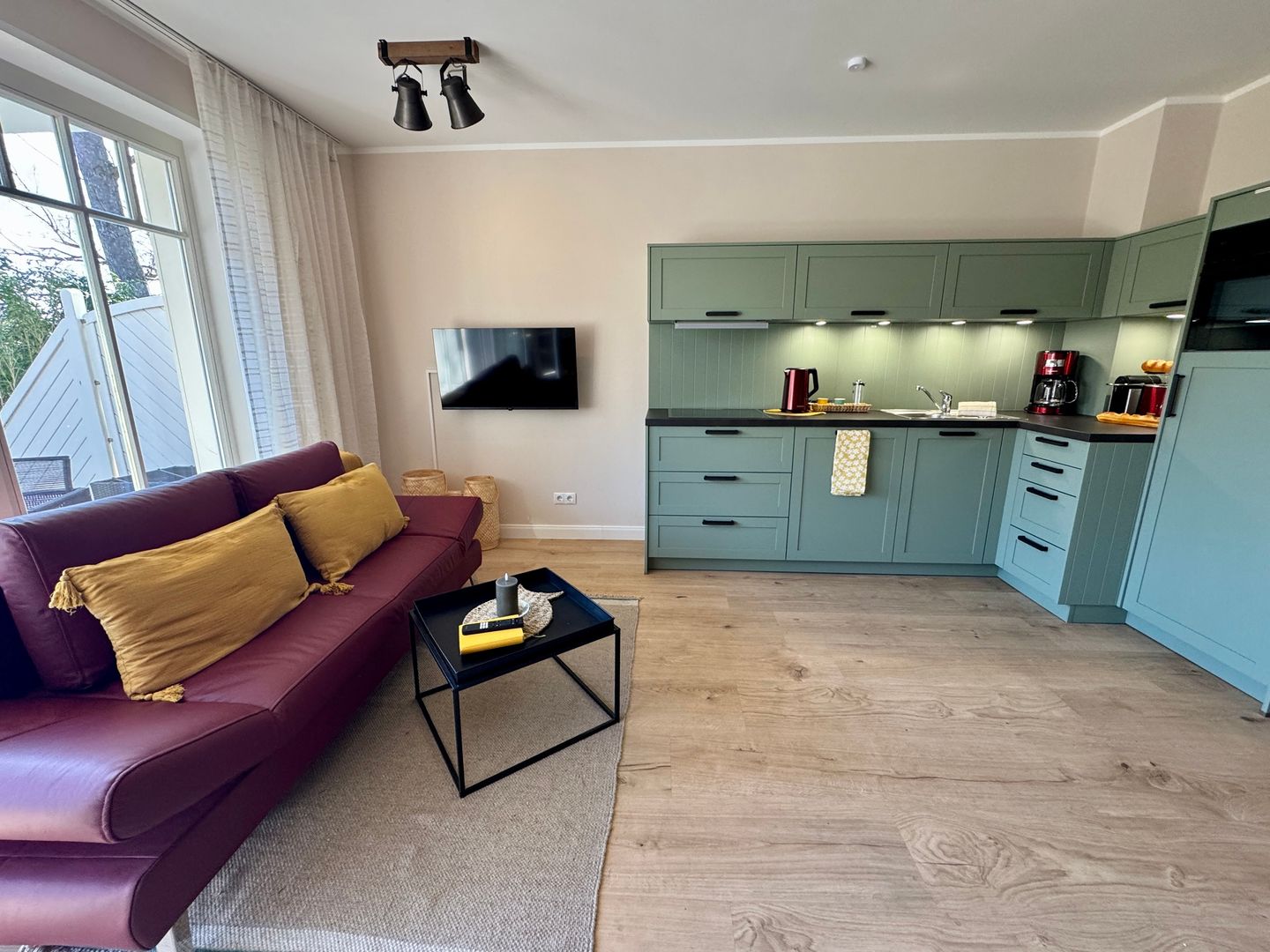 Zwischen dem leisen Rauschen des Meeres und der Ruhe des Waldes erwartet Sie ein Ort, an dem der Alltag ganz selbstverständlich in den Hintergrund tritt. Der Name "Waldresidenz" erinnert an die enge Verbindung des Hauses zur umliegenden Kiefernlandschaft. Das moderne Appartement in Prerow, 2024 erbaut, ist ein liebevoll gestalteter Rückzugsort für alle, die Erholung, Natur und Komfort miteinander verbinden möchten. Auf 50 m² im Parterre entsteht eine Atmosphäre, die sofort ein Gefühl von Ankommen vermittelt – hell, gemütlich und durchdacht eingerichtet.