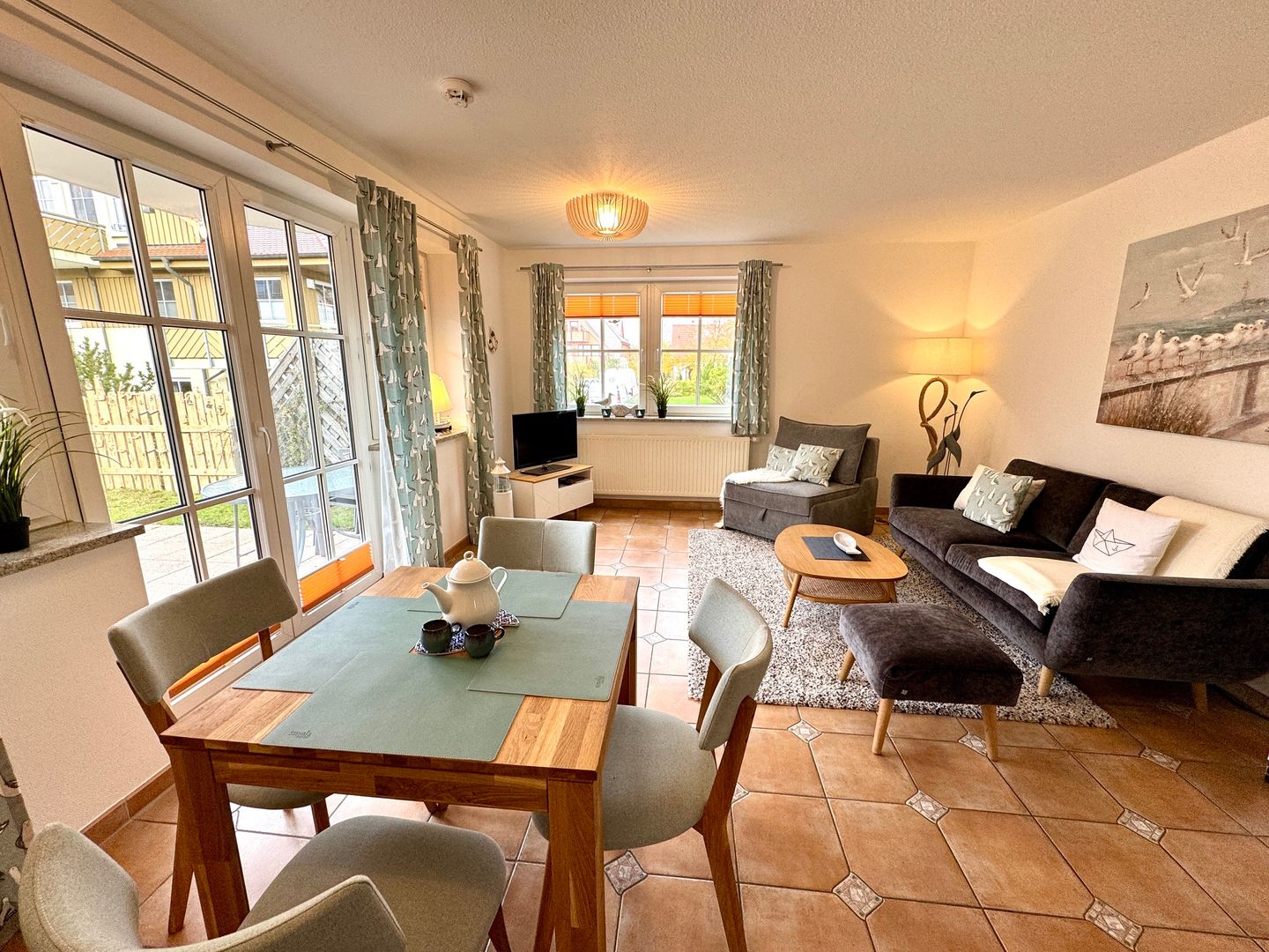 Eine helle, liebevoll maritim eingerichtete Erdgeschosswohnung für maximal 4 Personen mit einer großen Terrasse nach Westen ausgerichtet.