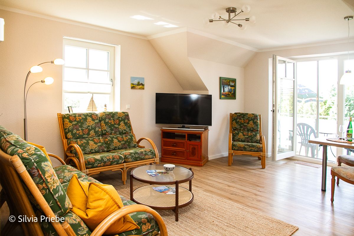 Ein weiteres Highlight der Wohnung ist der Balkon, der Ihnen die Möglichkeit bietet, die frische Ostseeluft zu genießen. Hier können Sie den Tag mit einem Kaffee starten oder den Abend mit einem Glas Wein ausklingen lassen – genießen Sie dabei den Blick über die Däscher von Wustrow und die beruhigende Umgebung. Für die Kleinen ist die Unterkunft kinderfreundlich ausgestattet, sodass sich jeder wohlfühlen kann.