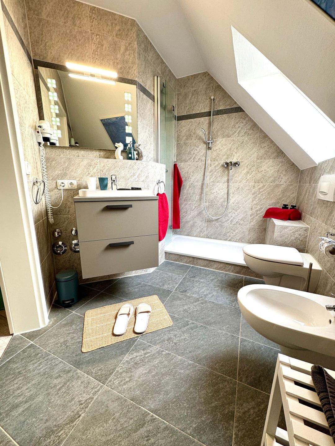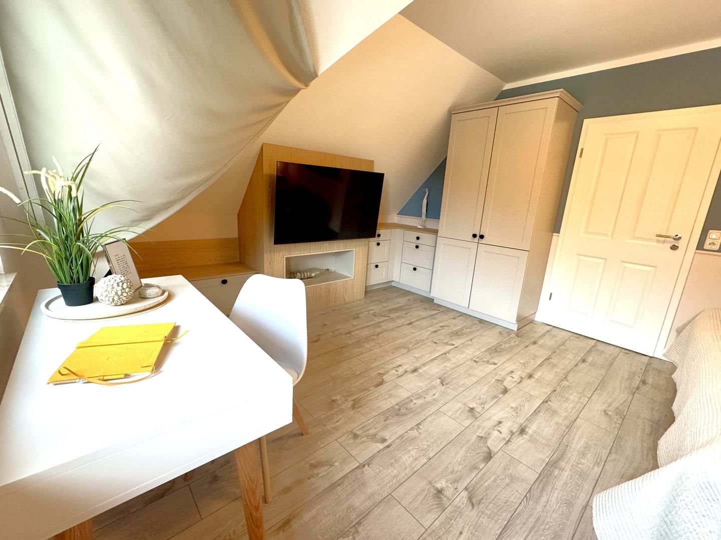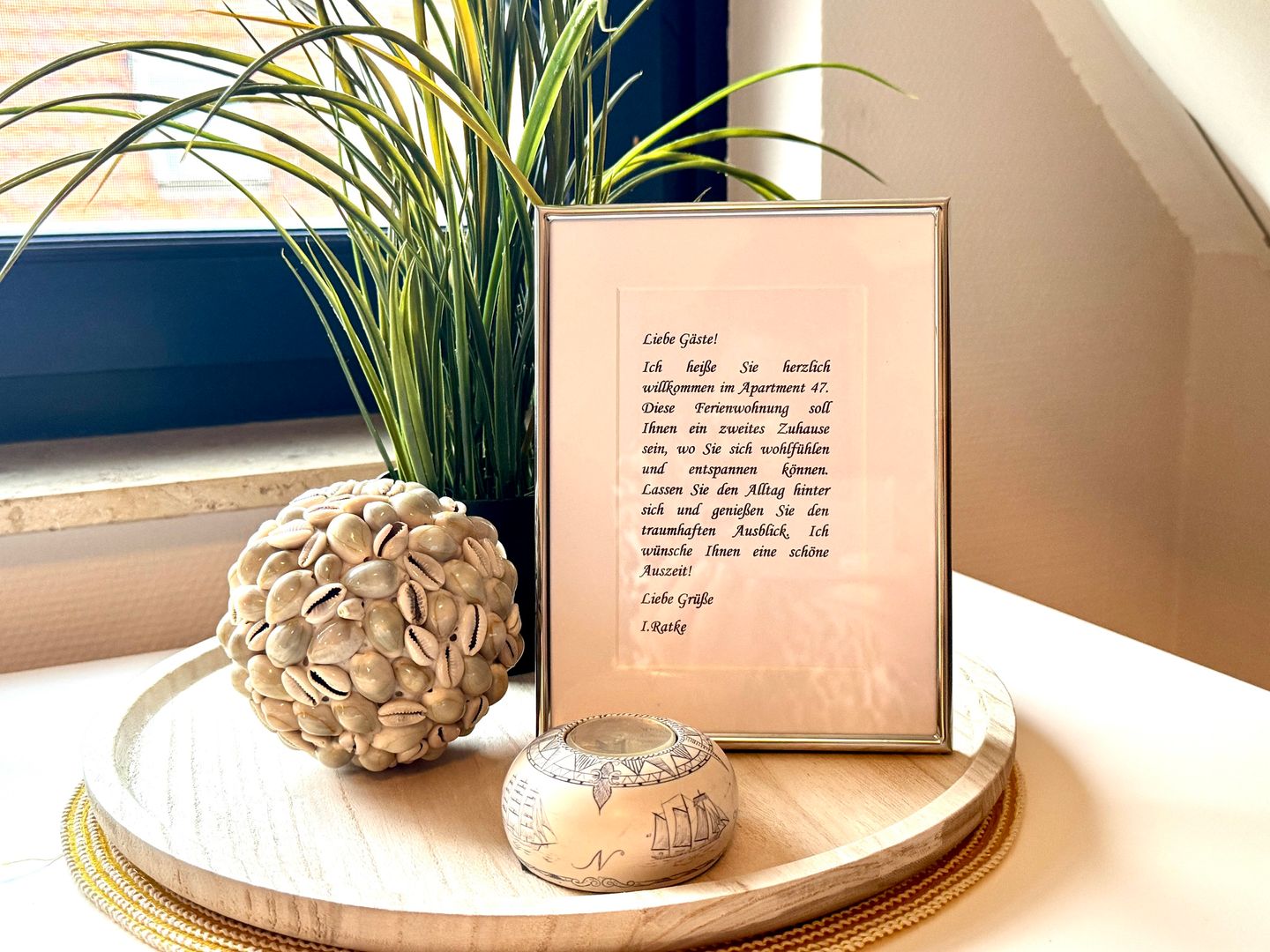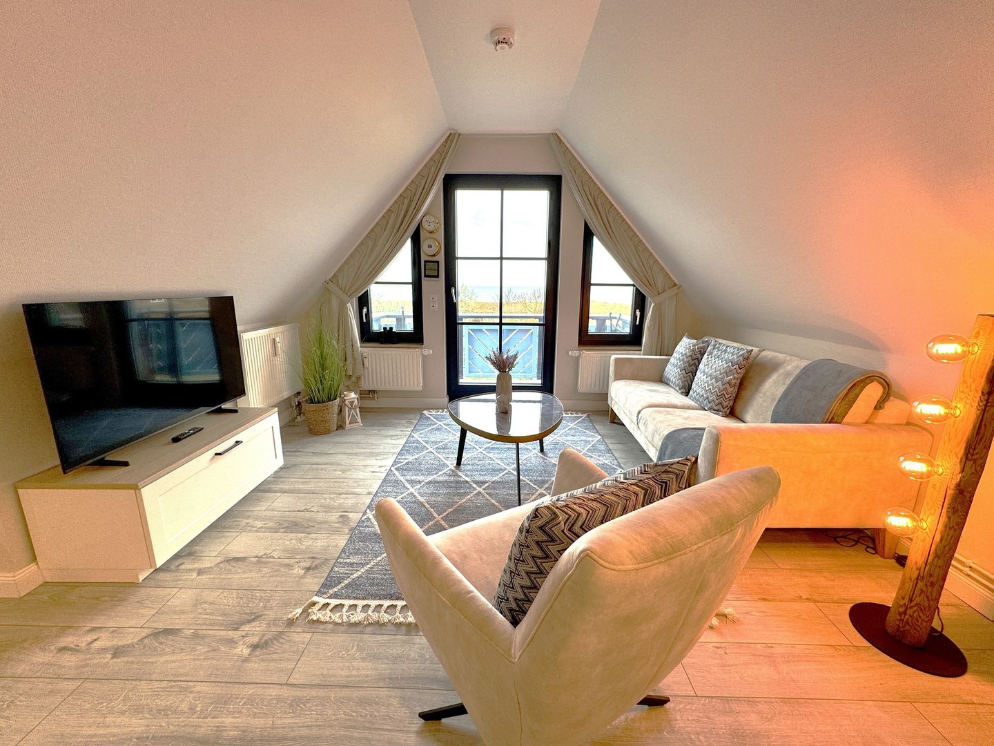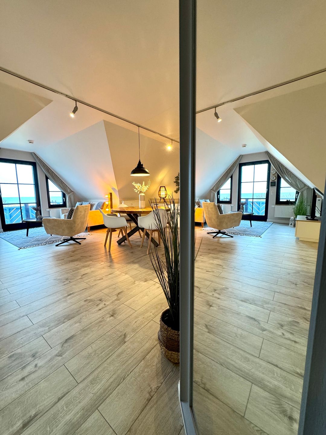 Ein geräumiges Dachgeschoss-Appartement für maximal 4 Personen mit einem Westbalkon und traumhaften Ostseeblick. Das Appartement wurde in 2025 liebevoll renoviert und modernisiert und verfügt über ein Wohnzimmer mit integrierter Küchenzeile und zwei Schlafzimmer mit jeweils einem gemütlichem Boxspringbett, für erholsamen Schlaf. Das Badezimmer ist mit einer Dusche und WC ausgestattet. Haustiere und Rauchen sind nicht gestattet, jedoch gibt es WLAN für einen bequemen Internetzugang während des Aufenthalts. Im Gemeinschaftsraum in der Tiefgarage stehen Waschmaschine und Trockner gegen Gebühr zur Verfügung. Ideal für einen entspannten Aufenthalt! Diesem Appartement ist der Außenstellplatz Nr. 47 zugeordnet.