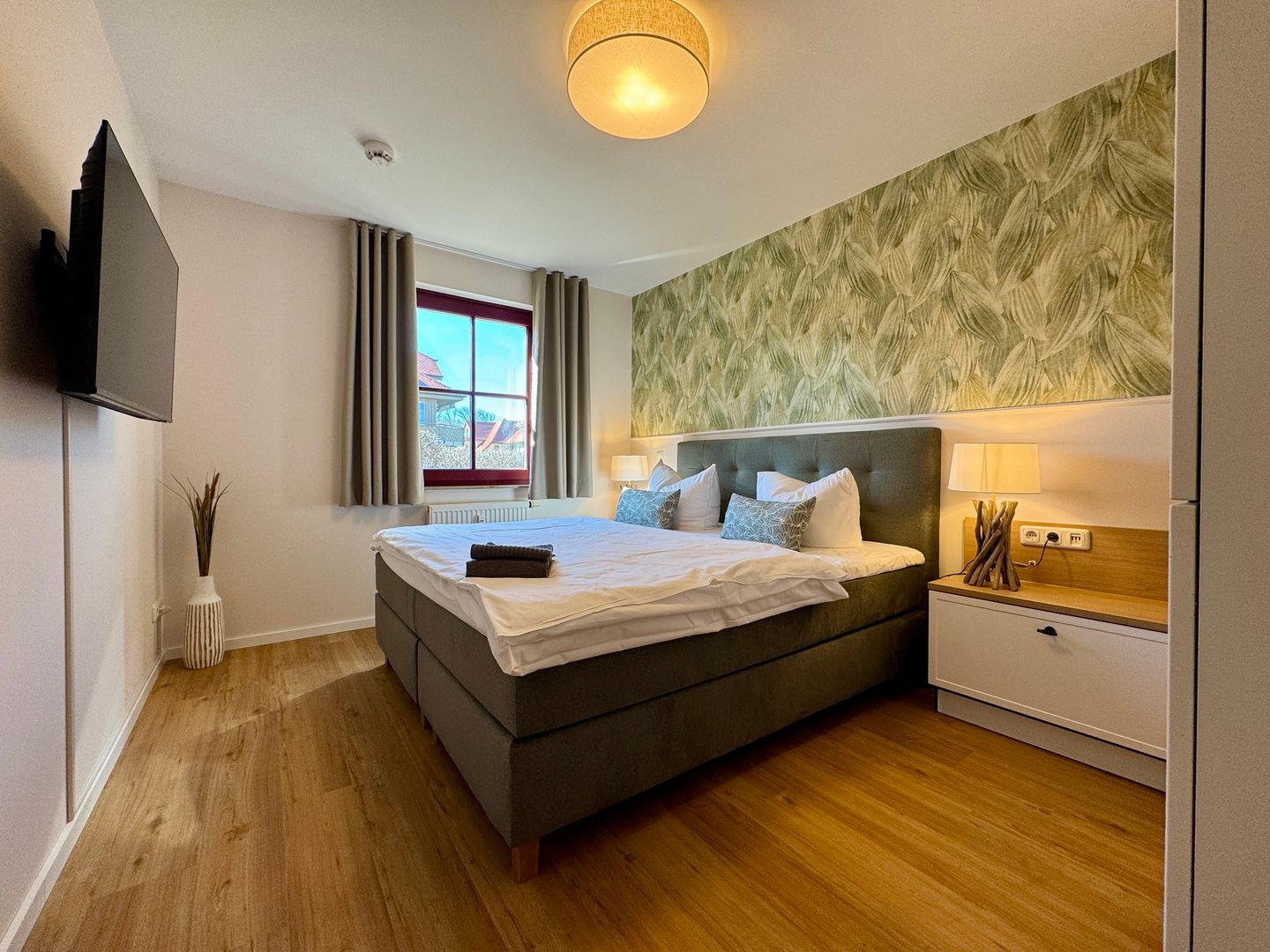 Die 6 Häuser der Ferienanlage bieten jeweils zwischen 9 und 15 Wohnungen. Die Lage direkt hinter dem Deich und die teilweise Ostseeblick-Wohnungen garantieren eine malerische Kulisse und einen entspannenden Aufenthalt. Die Ferienwohnungen sind für 2 bis 6 Personen geeignet, was sie ideal für Paare, Familien oder kleinere Gruppen macht. Damit Sie sich während Ihres Aufenthalts rundum wohlfühlen, sind die Ferienwohnungen zum größten Teil ein Nichtraucherhaus und bieten WLAN für Ihre digitale Verbindung. Die Wohnungen umfassen ein oder zwei gemütliche Schlafzimmer, ein helles Wohnzimmer mit einer Sofaecke und einem digitalen TV-Anschluss für entspannte Abende.